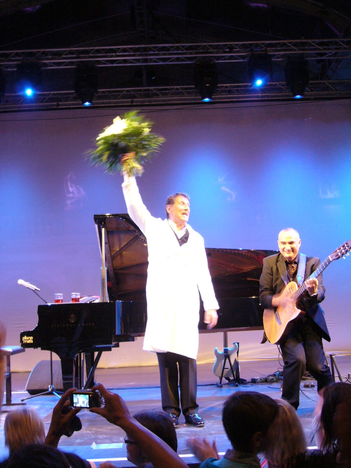 Er wird im September 79 Jahre. Aber nicht alt! Als Grandseigneur der (nicht nur) deutschsprachigen Unterhaltungskunst versteht er, seine Kräfte einzuteilen (und doch alles zu geben, hochkonzentriert, im Dialog mit dem Publikum singend, die Bühne leichtfüßig erobernd) sowie ein dem Ambiente und Publikum gemäßes Repertoire auszusuchen.